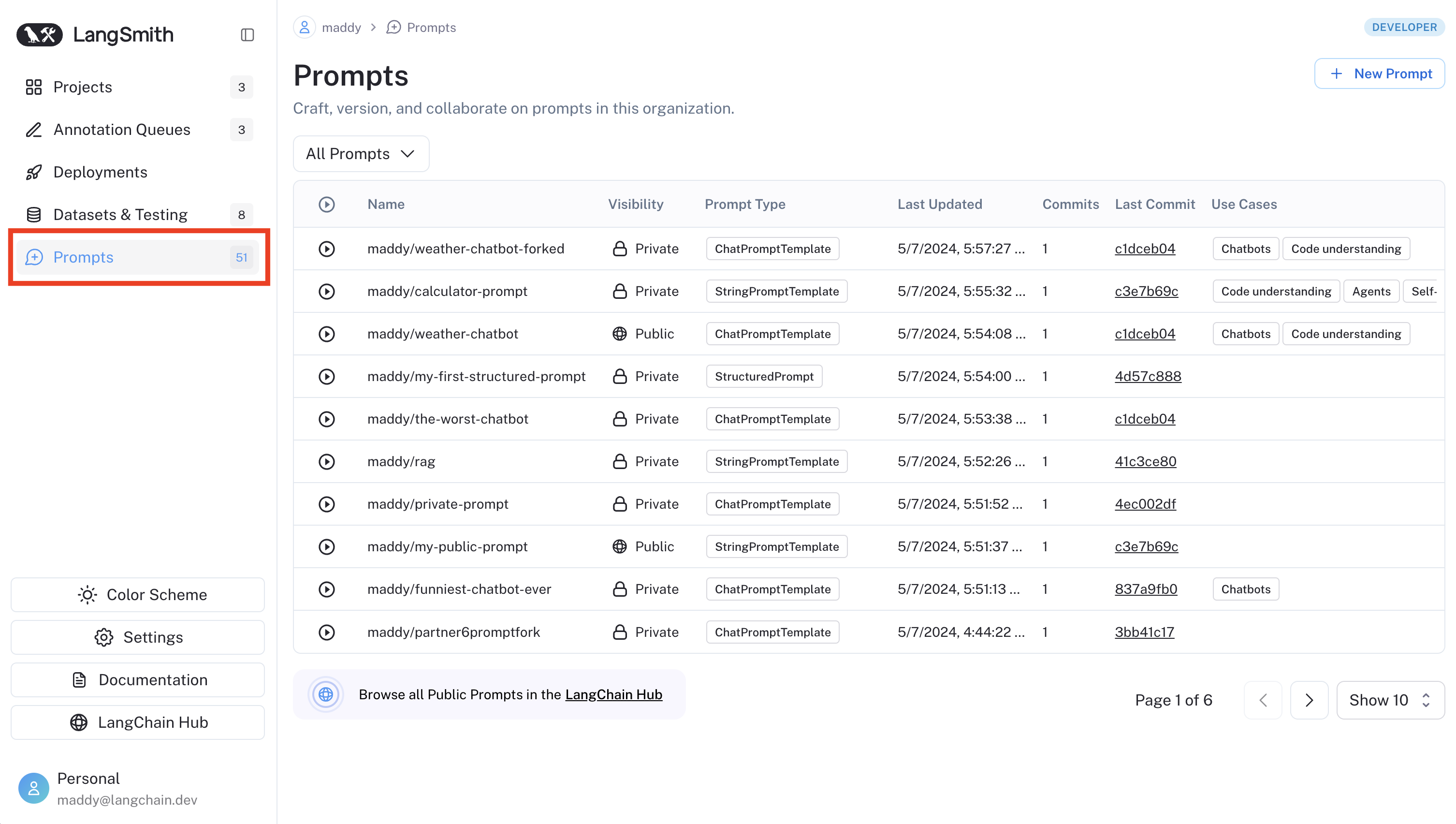 prompt_id: The ID of the prompt that was committed.prompt_name: The name of the prompt that was committed.commit_hash: The commit hash of the prompt.created_at: The date of the commit.created_by: The author of the commit.manifest: The manifest of the prompt.